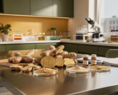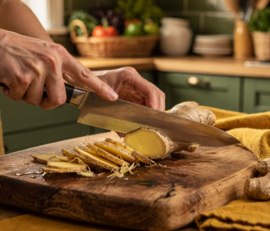 생강에는 진저롤과 쇼가올이라는 생리활성 성분이 풍부합니다.