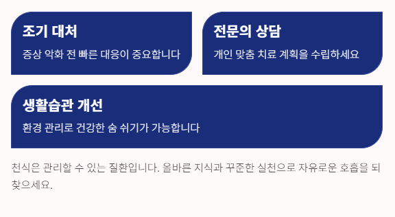 천식은 단순한 기침이나 호흡 불편으로 시작되지만, 방치하면 일상생활에 큰 영향을 줄 수 있는 질환입니다.